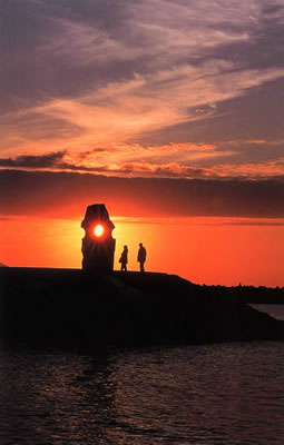 恋人岬のモニュメントに冬の夕日が入り恋を語る二人のシルエットが優しくあたりを包む。